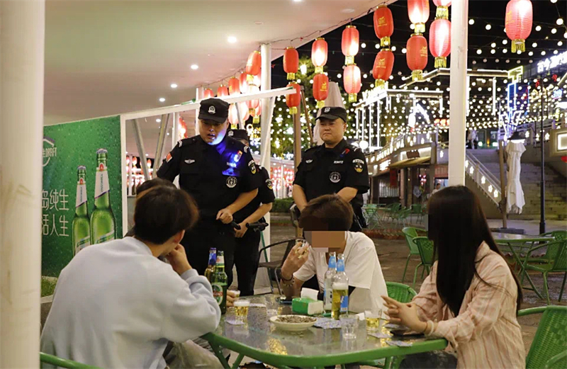 與此同時(shí),武都最具“煙火氣”的夜市區(qū)域,也迎來了特別的守護(hù)者。熱鬧的萬象街景區(qū)入口,警車格外醒目。7月31日晚,特巡警馬寧和同事正對(duì)燒烤攤前喝酒的年輕人做安全宣講。“喝了幾杯沒事,但騎車不安全,叫個(gè)代駕吧,安全第一。”燒烤攤張老板說:“以前收攤晚,總擔(dān)心有人鬧事?,F(xiàn)在警察就在旁邊守著,處理糾紛又快又公道,心里特別有底。”數(shù)據(jù)顯示,這支夜間警力已快速調(diào)解酒后口角、消費(fèi)糾紛47起,發(fā)放防詐宣傳單3200余份,有效維護(hù)了夜市經(jīng)濟(jì)的良好秩序。
