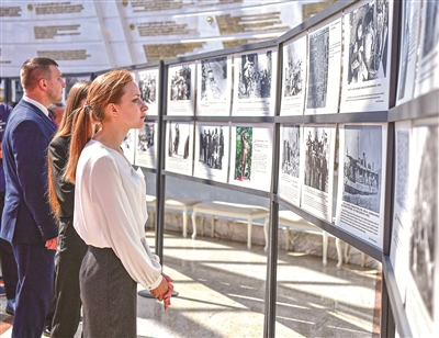 定格共同的勝利,重溫跨越時(shí)空的二戰(zhàn)記憶。“銘記歷史 開創(chuàng)未來”——紀(jì)念中國(guó)人民抗日戰(zhàn)爭(zhēng)暨世界反法西斯戰(zhàn)爭(zhēng)勝利80周年圖片展正在白俄羅斯國(guó)立偉大衛(wèi)國(guó)戰(zhàn)爭(zhēng)歷史博物館展出。圖為觀眾在參觀展覽。新華社記者 張超群 攝