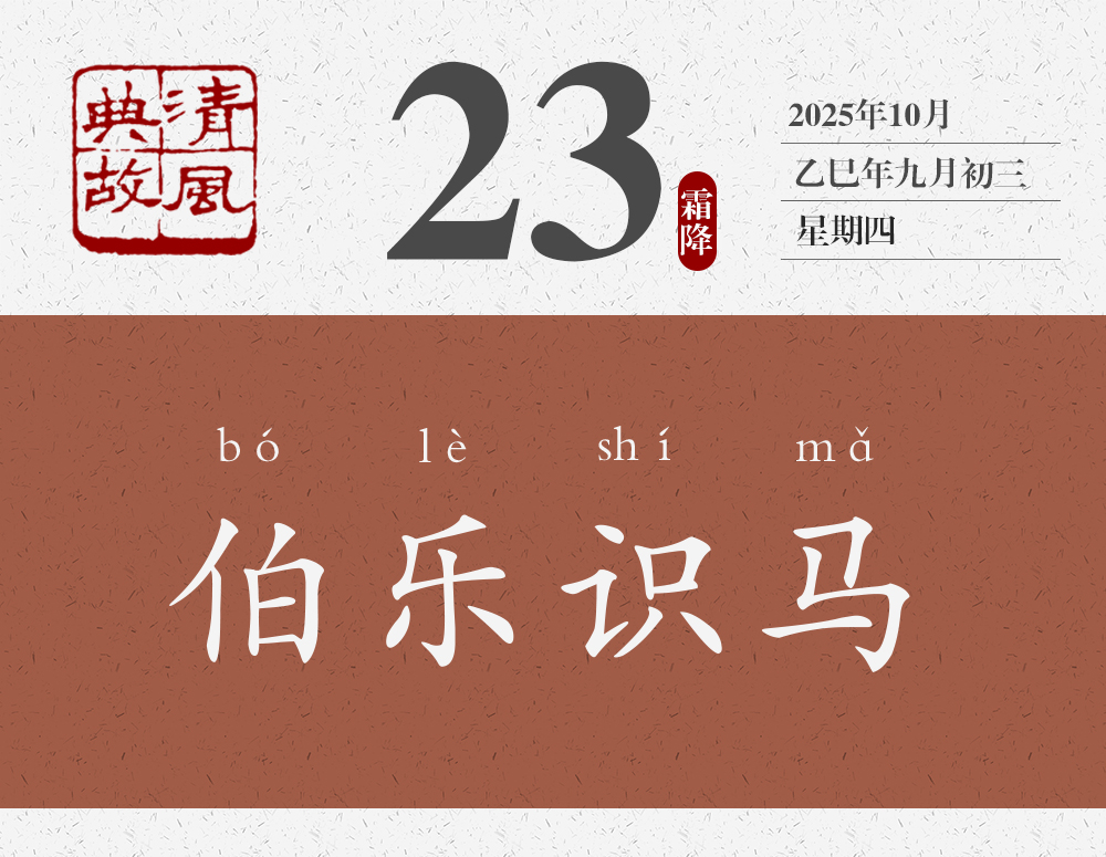 春秋秦穆公時,有一個著名的相馬師叫孫陽。因為神話傳說中,掌管天馬的神仙叫伯樂,人們?yōu)榱吮硎緦O陽的敬佩,就稱他為伯樂。屈原《九章•懷沙》以及《莊子•馬蹄》《列子•說符》都曾經(jīng)提到過伯樂?!稇?zhàn)國策•楚策四》里,春申君的舍人汗明,向春申君講了一個關(guān)于千里馬的故事:“夫驥之齒至矣,服鹽車而上太行。蹄申膝折,尾湛胕潰,漉汁灑地,白汗交流,中阪遷延,負轅不能上。伯樂遭之。下車攀而哭之,解纻衣以冪之。驥于是俛而噴,仰而鳴,聲達于天,若出金石聲者,何也?彼見伯樂之知己也。”