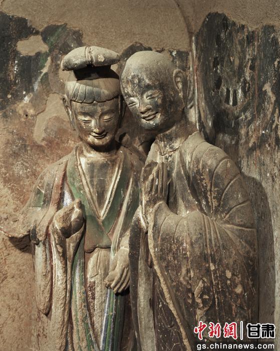 圖為開鑿于北魏時期的麥積山石窟第121窟,“竊竊私語”的菩薩與弟子。(資料圖)麥積山石窟藝術(shù)研究所供圖