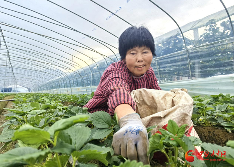 金秋時節(jié),隴南市成縣店村鎮(zhèn)新村的草莓種植基地里,工人俯身田間,正忙著為草莓苗除草、疏葉,一株株翠綠的草莓苗在溫暖的塑料大棚里茁壯成長,預(yù)示著來年又將是一個豐收季。這背后是店村鎮(zhèn)以“黨支部+合作社+農(nóng)戶”模式發(fā)展特色產(chǎn)業(yè),將“小草莓”打造成富民興村“大產(chǎn)業(yè)”的生動實踐。