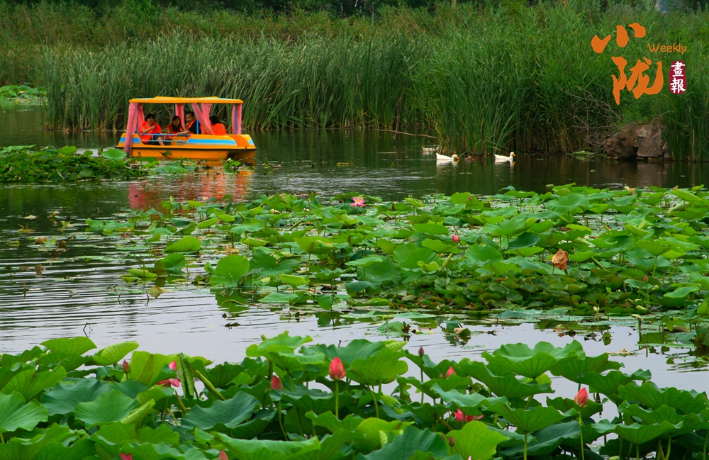 低頭凝望荷塘,荷葉像一把把撐開的綠傘鋪展在水面上,遮住了秋日的熱氣,給大地帶來一片清涼。荷花、睡蓮點綴其中,雀鳥在水天之間嬉戲盤旋,時而點水,時而落于荷花之上,于遠處觀賞這份和諧景致,真是別有一番趣味。