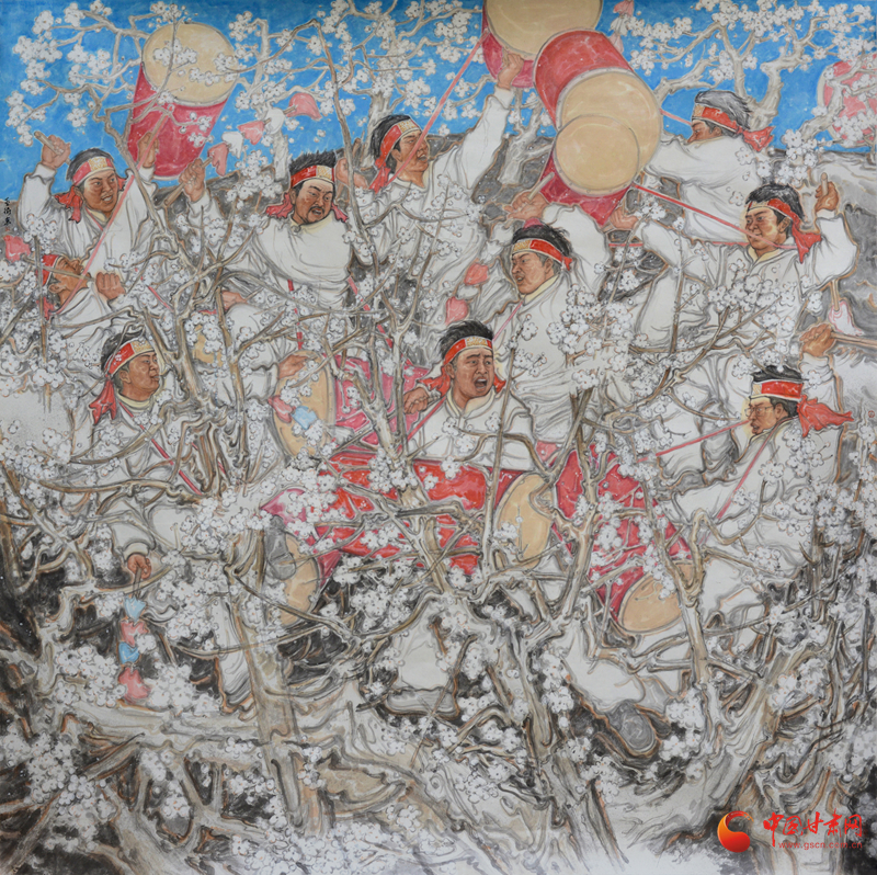 中國畫《梨園春曉》與《故鄉(xiāng)的記憶》功力深厚。作品以細(xì)膩靈動的筆觸、匠心獨(dú)運(yùn)的構(gòu)圖與深沉的文化底蘊(yùn),生動捕捉了傳統(tǒng)戲曲的神韻與鄉(xiāng)土家園的情懷,既展現(xiàn)出畫家對生活的深切熱愛,也體現(xiàn)了其對傳統(tǒng)繪畫藝術(shù)的深刻理解與傳承,代表了當(dāng)前蘭州美術(shù)創(chuàng)作的高水準(zhǔn)。