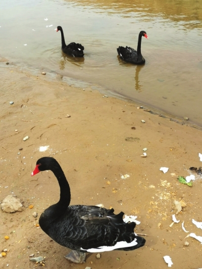 “黑天鵝還是第一次看到,3只都很漂亮,吸引了好多市民觀看。”3月25日下午,81歲的退休職工張?bào)w成向本報(bào)新聞熱線4286666反映,這3只黑天鵝在西固的黃河邊安“家”已有好長時(shí)間了,每天都有愛護(hù)動(dòng)物的市民前來給它們喂食。不管這些是野生還是家養(yǎng)黑天鵝,希望有關(guān)部門保護(hù)起來,以免因喂食發(fā)生意外。