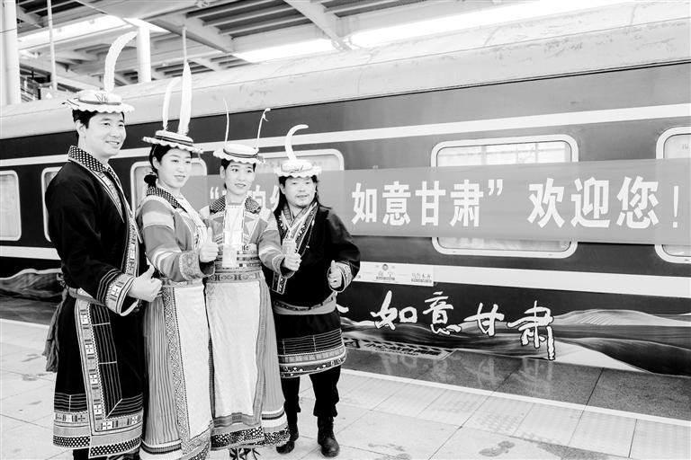 為落實甘肅省“旅游強(qiáng)省”戰(zhàn)略,自2018年開始,依托甘肅境內(nèi)豐富的旅游資源和鐵路客運資源優(yōu)勢,以“一列車、一張圖、一種游”為思路,“環(huán)西部火車游”客運旅游產(chǎn)品上線,讓“列車?yán)@著景點過”變成“火車朝著景點開”,在實現(xiàn)“引客入甘”等方面發(fā)揮了積極作用。2020年,在甘肅省文化和旅游廳的大力支持下,立足疫情常態(tài)化防控背景,“環(huán)西部火車游”實現(xiàn)跨區(qū)域王牌旅游產(chǎn)品“三級跳”:“五一”期間開通隴南到敦煌的旅游線路,打通“如意甘肅”全境全線;8月份,打通四川、重慶、陜西、寧夏、青海等西部6省區(qū)市跨省游小環(huán)線;九月底,隨著由甘肅文旅牽頭的“環(huán)西部火車游”跨區(qū)域旅游產(chǎn)品從廣西一路開到新疆,一條綠色長龍,儼然一艘“陸上郵輪”,串起西部旅游黃金線,打造出一條“坐著火車游西部”的文旅經(jīng)濟(jì)消費帶。