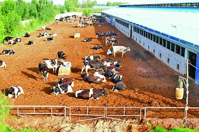 張掖市高臺縣巷道鎮(zhèn)東聯(lián)村的奶牛養(yǎng)殖場 藺鵬攝/光明圖片
