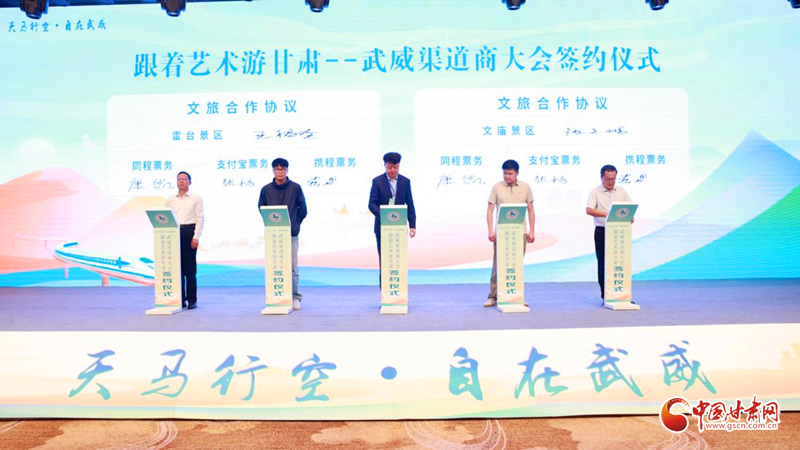 蘭鐵國旅與冰溝河景區(qū)、河西都會達(dá)成合作協(xié)議;市屬重點景區(qū)雷臺、文廟、天梯山石窟、涼州會盟紀(jì)念館與攜程、同程、支付寶三大平臺達(dá)成線上合作簽約,四方將圍繞客源組織、門票直連、聯(lián)合推廣展開立體合作。