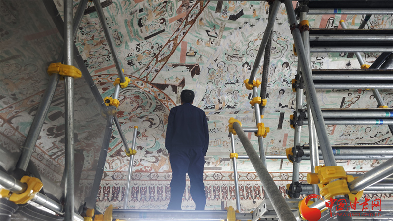 10月31日,由中央網(wǎng)信辦網(wǎng)絡(luò)傳播局、國家文物局政策法規(guī)司指導(dǎo),中國互聯(lián)網(wǎng)發(fā)展基金會特別支持,甘肅省委網(wǎng)信辦、省文物局主辦,張掖、嘉峪關(guān)、酒泉市委網(wǎng)信辦與敦煌研究院、中國甘肅網(wǎng)、鳳凰網(wǎng)甘肅頻道共同承辦的“何以中國|壁畫里的中國·當(dāng)AI遇見小飛天”網(wǎng)絡(luò)主題宣傳活動(dòng)走進(jìn)敦煌研究院,采訪在莫高窟修壁畫的青年修復(fù)師唐青松。